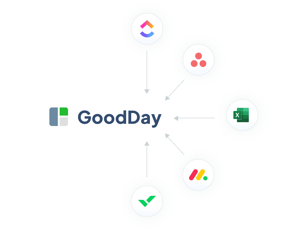 Workspace showcasing GoodDay's core capabilities — hierarchy, task types, templates, custom views, and project management essentials.